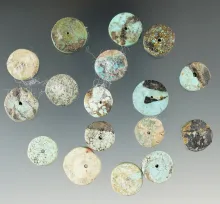 17 drilled turquoise beads recovered in New Mexico. Most are 9/16" diameter. |