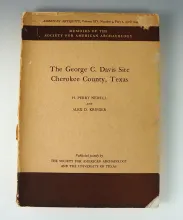 Softcover book "The George C. Davis site - Cherokee County, Texas" by Newell and Krieger. |
