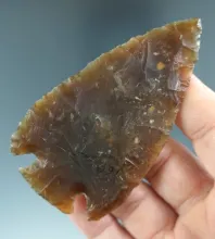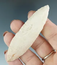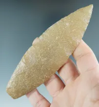 3 5/16" Beautiful Knife River Hopewell. Translucent and great workmanship. Found in Wisconsin. |