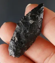1 5/8" Inuit point found in Alaska and made from patinated Obsidian. |