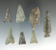 Group of seven assorted Flint Projectile Points recovered in Juneau, Alaska. Largest is 1 5/8". |