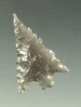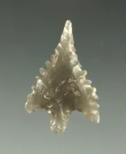 1" obsidian Calapooya point with nice edge serrations - northern California. Ex. Shewey. |
