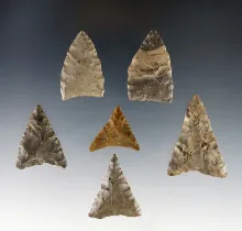 Set of 6 Triangular points found in Afton, Chenango Co., New York. |