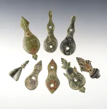 Set of 9 Brass Tinkling Cones recovered at the Dann Site, Lima, Monroe Co., New York. |