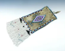 14" tall (including 5" beaded drop fringe) x 6" wide Pipe Bag/Pouch w/ original leather drawstring. |