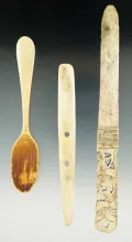 Set of four historic era carved bone items, largest is 7 1/4". 70.00