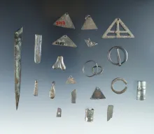 20 assorted metal ornaments and objects, largest is a 3 3/4" copper awl - Allegheny County NY. NEW YORK 175.00