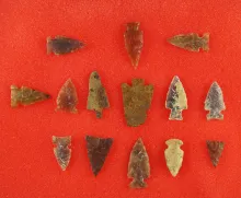 Set of 14 Plains area arrowheads, two are metal. Largest is 1 1/4". |