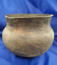 Nice assortment of flint artifacts, drilled stone, shell beads and stone fetish, largest is 2 7/16".