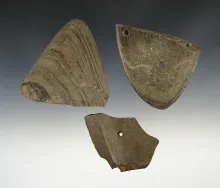 Set of 3 anciently salvaged slate pieces found in the Midwest. The largest is 3 1/4". |