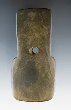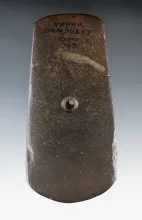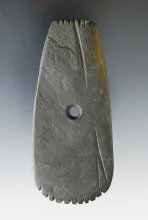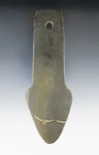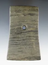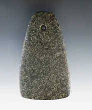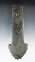 4 7/8" Adena Trapezoidal Pendant made from green and black Mottled Slate. Found in Summit Co., Ohio.
