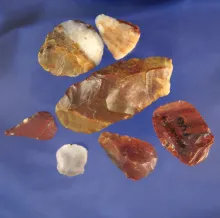 Set of seven assorted Midwestern artifacts, largest is 3 7/16". |