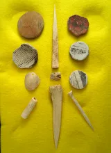 Unique set of artifacts including salvage pottery discs and bone relics - Witch Well, Arizona. ARIZONA 40.00