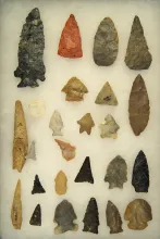 Group of assorted flint and bone artifacts found in Ohio, largest is 3 7/8". |