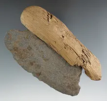 Nice! 4 5/16" long Inuit slate Ulu with original ancient driftwood handle - Alaska. |