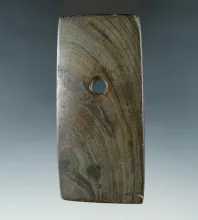 Thin, well patinated and nicely made 4 1/16" Slate Pendant that is nicely banded, Shelby Co., Indian