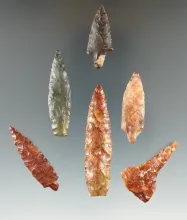Six Columbia River points and tools found in Washington, largest is 2 1/16". |