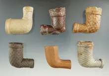 5" bird effigy Iroquois clay pipe with partial restoration to the effigy and a broken and mended elb