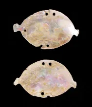 Nice Pair of Abalone Shell Gorgets found close to the Columbia River. The largest is 2 3/4". |