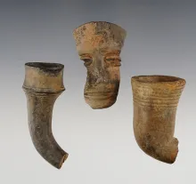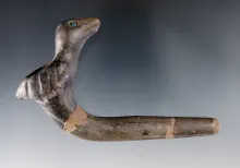 Sale Highlight! 3 3/8" long x 2" tall Bird Effigy Pipe found near the Genesee River, New York. |