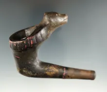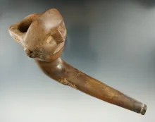Large 6 3/16" long Iroquois face effigy pipe with restoration. Found in New York. NEW YORK 1,600.00