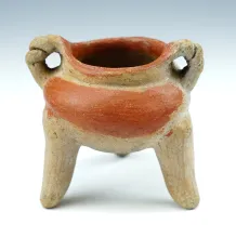 3 9/16" Tall tri-leg pottery vessel found in Costa Rica. |