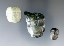 Set of 3 Pre-Columbian Drilled Pendants that are carved into a face. The largest is 1 9/16". |