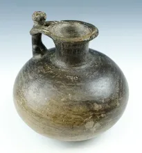 4 1/2" tall late Moche miniature human effigy bottle - Peru. Ex. Steve Puttera, Marvin King. |