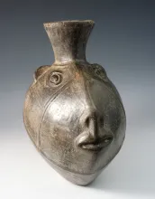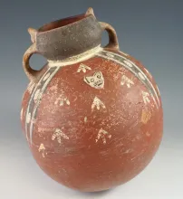 8 1/4" Pre-Columbian Pottery Vessel in very nice condition with strap handles. |