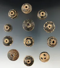 Group of 12 pre-Columbian Spindle Whorls found in Mexico, largest is 1 1/4" diameter. |