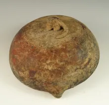 Very unique 6 1/4" wide pre-Columbian pottery container lid with an animal effigy on top. |