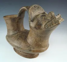 10 3/4" long by 5 1/4" tall Moccasin shaped pottery vessel found in north central Mexico. |