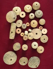 Large group of 31 assorted Pre-Columbian clay beads and spindle whorls found in Mexico. |