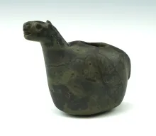 Nicely patinated and colorful 2" tall Alpaca Canopa found in Peru. |