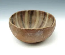 Nice interior paint design on this 4 3/4" diameter Chancay Culture pottery bowl found in Peru. 45.00