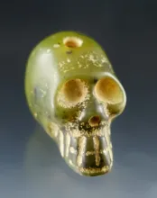 Rare! 1 7/8" Highly polished PreColumbian hand drilled Skull Effigy, Mesoamerica. |