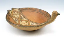 5 1/4" Wide beautifully decorated Inca Avian Effigy Bowl recovered in Peru. |