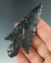 Excellent style on this 3 1/16" Pre-Columbian Obsidian point with beautiful diagonal flaking. |