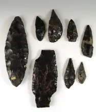 Set of 8 obsidian Toltec artifacts from Mexico including a large 8" Blade. | MEXICO | 85.00 | |