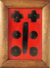 Set of seven pre-Columbian Obsidian beads found in New Mexico. Largest is 1 7/8". | NEW MEXICO | 70.00 |
