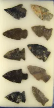 Group of 10 nice Ohio Arrowheads, largest is 1 5/8". |