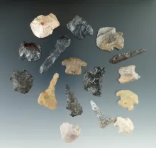 Group of 17 archaic points and scrapers found near the upper Cisco Honda, at Sago County NY. NEW YORK 35.00