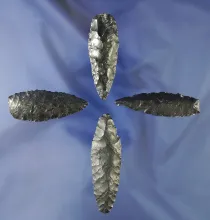 Set of four obsidian artifacts found near Fort Rock Oregon, largest is 2 5/8". |