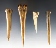 Set of four bone Awls , largest is 5". Recovered in Colusa Co., California. Ex. Chris Ehrke. |