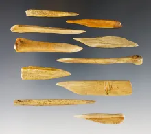 Group of 10 assorted Bone Awls and Projectiles recovered at a site in Colusa Co., California.. |