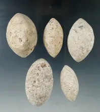 5 Bi-pointed aboriginal bolo stones, largest is 2 3/8". Collected on the shores of the island of Gua