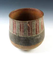 6 1/4" tall by 6 1/2" wide Nazca Polychrome Pottery Vessel recovered in South America. |