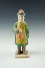 7 3/4" Tang Dynasty Male Figure with nice paint and glaze. Recovered in China, circa AD 600-900 |