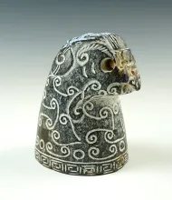 Large 4 1/4" tall Perforated piece of beautiful Jade. Recovered in Southeast Asia. |