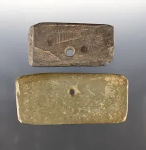 Pair of Neolithic Slate Drilled suspension Knives, recovered in China. Largest is 4 1/16". |